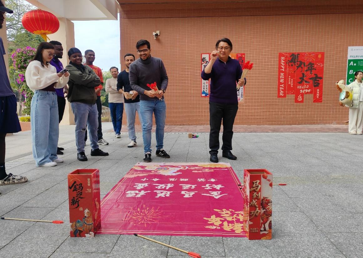 The college leaders presented students with festive gift packages. A variety of traditional folk games were organised on campus, including hoop toss, pitch-pot, and a game inspired by agrarian culture. These activities offered students an immersive experience of traditional Chinese festivities and created a lively, joyful atmosphere.